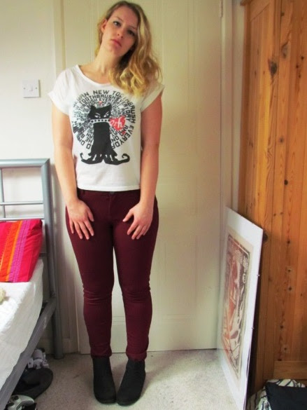 I'm a big Rihanna fan (who isn't?) and when I saw this tee in Primark I had to get it. It's got a really nice kind of worn, flecked look to it and actually ties at the front, I just tucked it in. I got the skirt ages ago from River Island and never really wear it because I find it quite hard to style. This is a look I feel like I'll look back on and think, 'What are you doing?!' it's a little bit different and quite bright. I'm also not sure the boots are right, I think I meant to put on black military boots, dammit!
